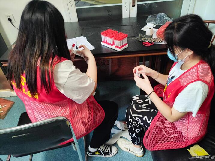 她第一时间联系社区工作者,从青年化身“小红”,服从大局、听从指挥。作为“小红”穿上志愿者红马甲时,她穿梭在核酸检测的队伍中,积极维护核酸检测排队秩序、讲解核酸检测注意事项、帮助老人申领冀石通电子通行证、提醒群众做好日常防护、帮助核酸检测的采样人员准备采样拭子和对样本采集管进行贴签等各项工作,确保检测工作有序、安全进行。