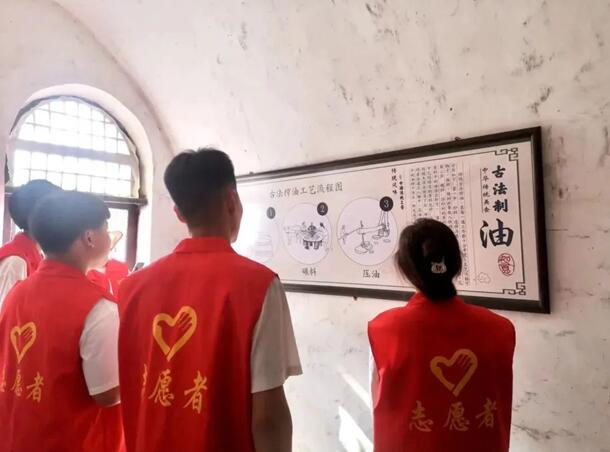 大梁江村始建于元末明初,被誉为“河北的乔家大院”、“大山深处露天民居博物馆”。队员们通过和路旁村民交谈,了解到当地的古法制油技艺时,村民表示非物质文化遗产是中华灿烂文化中浓墨重彩的一笔,希望更多的人来了解它、守护它,并能将其传承下去。队员们深刻认识到青年一代的责任,思考着如何赋予传统非遗文化新的生机和活力,让非遗文化薪火相传。