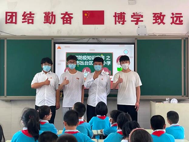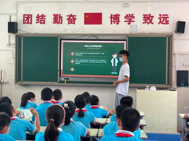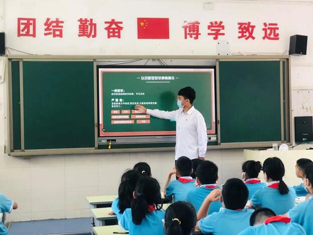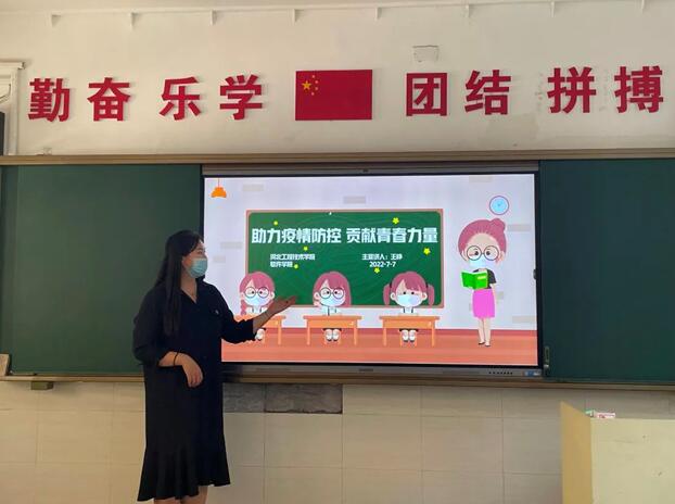 为进一步做好新型冠状肺炎常态化防控工作,精准落实管控措施,倡导健康文明生活方式,提高中小学生疫情防范意识。7月20日,河北工程技术学院软件学院辅导员王峥老师带领燕赵逐梦队的抗疫志愿者们前往邯郸市丛台区实验小学进行科学防疫知识宣讲。