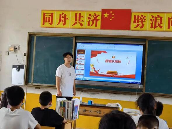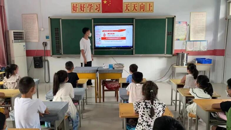 为庆祝中国共产党成立101周年,喜迎党的二十大胜利召开,引导青少年从小听党话、感党恩、跟党走,培养担当民族复兴大任的时代新人。7月4日软件学院社会实践团队分别前往河北省定州市庞村镇东南宋小学、河北省邢台市任泽区北甘寨村小学,向学生们宣讲红色故事。通过重温雁翎队精神,回顾英雄征程,新时代新青年发言三个部分,让同学们了解红色精神,发扬红色精神。