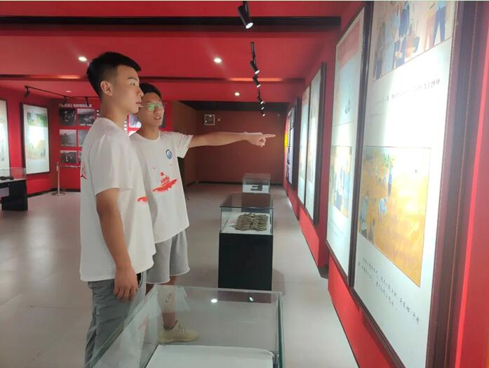 全体队员在讲解员的引领下参观抗敌斗争纪念馆,进入馆内,映入眼帘的是地道战的沙盘模型,可以直观地看到房连房、村连村的地道网络,这是当年抗战对敌的坚强地下堡垒。馆内一件件抗日时期留存下来的器具设施将队员们带回到了战火纷飞的峥嵘岁月,在场所有队员深受震撼和鼓舞。