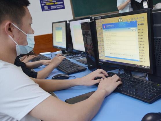赛前,工作人员提前进场开始布置打字内容,并检查比赛场地及设施调试。参赛人员使用金山打字通进行比赛。比赛开始后,同学们全部进入了状态,目光紧盯屏幕,极其认真并伴随着敲击键盘的声音,教室内充满紧张的气氛,参赛选手们都屏气凝神,全神贯注。