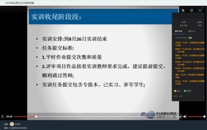 我院2020级特色班学生的实训自7月4日开始,不知不觉中实训已接近尾声,为使学生了解大三阶段实训、实习、论文及实习资料整理等各项工作安排,8月18日,软件学院教质部主任齐立双老师通过钉钉线上形式组织开展2023届学生实习动员会。