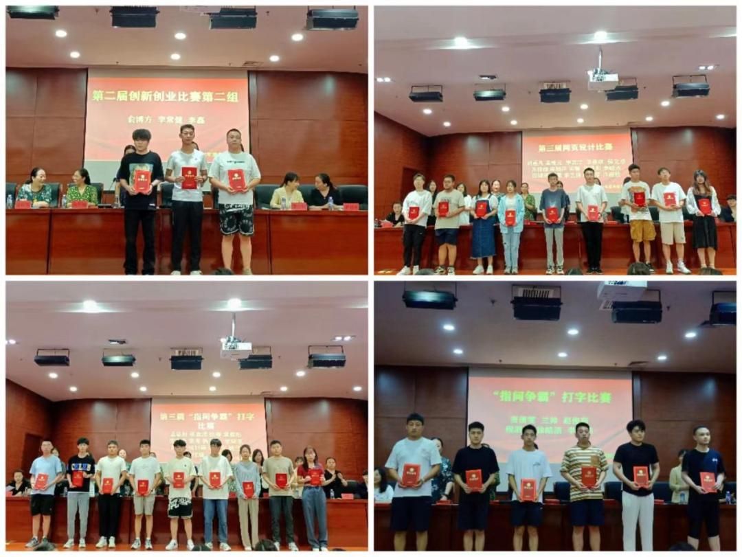 致辞结束后,颁奖典礼正式开始,首先为第一、二、三届软件学院专业技能竞赛获奖学生及专业技能竞赛优秀指导老师颁奖,软件学院专业技能竞赛赛项包括:软件设计比赛、网页设计比赛、平面设计比赛、“指间争霸”打字比赛、创新创业比赛、电商产品创意海报设计比赛、软件系统开发说明书比赛、软件测试比赛、网络安全知识竞赛、学生职业生涯规划比赛等等。专业技能比赛激发了学生的学习主动性和积极性,专业技能也得到了进一步提升。