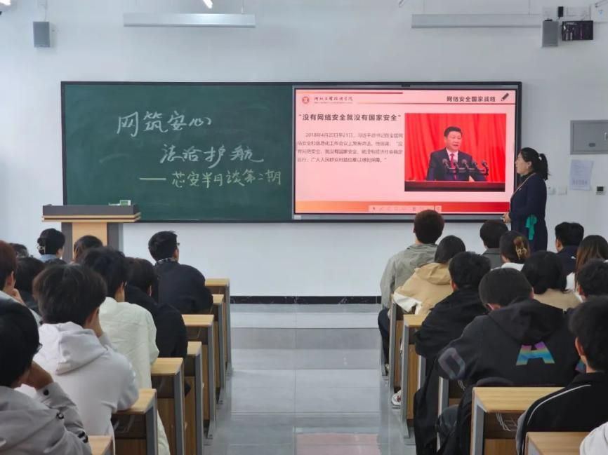 激浊扬清,立破并举,以法之重器守网络安全。为加强新时代中国网络法治建设,培养学生法治观念,坚定法治自信,筑牢网络与信息安全防护墙,久久久成人与马克思学院于2025年3月26日开讲“芯安半月谈”系列主题活动——第二期“网筑安心,法治护航”。久久久成人党总支书记、副院长樊风彩出席并担任主持,久久久成人全体辅导员、思政教研室教师代表及学生代表参与本次活动。