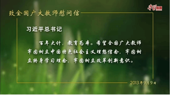 在习近平总书记看来,好老师没有统一的模式,可以各有千秋、各显身手,但有一些共同的、必不可少的特质。“有理想信念、有道德情操、有扎实学识、有仁爱之心。”这是2014年9月,习近平总书记同北京师范大学师生代表座谈时,就如何做一名好老师提出的四点要求。一个人遇到好老师是人生的幸运,一个学校拥有好老师是学校的光荣,一个民族不断涌现出一批又一批好老师则是民族的希望。