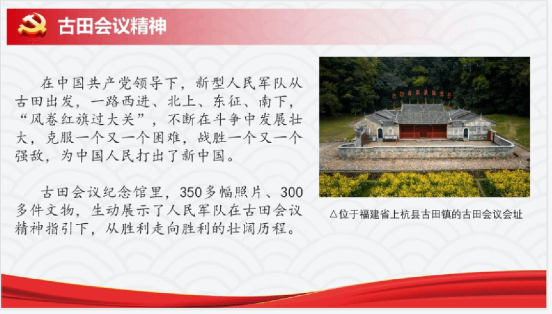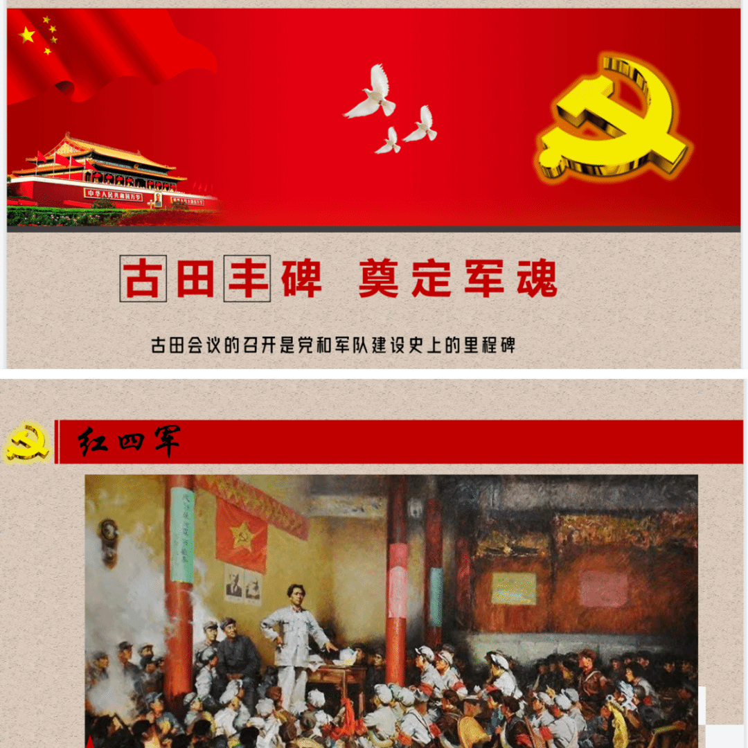 古田会议将马克思列宁主义与中国革命斗争的具体实践相结合,解决了如何从加强党的思想工作着手保持党的无产阶级先锋队性质和建设新型人民军队的根本问题,是人民军队建设史上一次极其重要的会议。会议通过的决议案所规定的红军建设的各项原则,不但在红四军得到实行,随软件工程三班的孙士涵同学首先从古田会议的背景入手,为同学们能进一步了解古田会议做出铺垫:1928年4月,毛泽东率领的工农革命军与朱德、陈毅率领的湘南起义部队在井冈山胜利会师,合编为工农革命军第四军,5月改编为中国工农红军第四军,简称红四军,朱德任军长,毛泽东任党代表,陈毅任政治部主任。11月,红四军前敌委员会成立,毛泽东任书记。随后,红四军在朱德、毛泽东、陈毅等领导下,打破了敌人对井冈山革命根据地的多次围攻,并于1929年1月起向赣南、闽西进军,开创了赣南、闽西革命根据地,奠定了后来的中央革命根据地的基础。