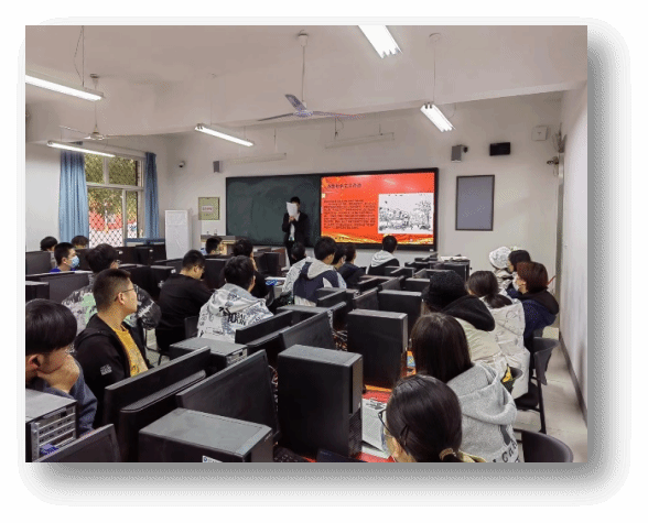 2022级电子商务二班的王彩玉同学给大家讲述了自新中国成立,这个新的国家需要改变,也应当改变。原本计划用十到十五年的时间,基本上完成社会主义过度,而实际上,新中国仅仅用了四年的时间,就完成了对农业、手工业和资本主义工商业的社会主义改造实现了把生产资料私有制转变为社会主义公有制,使中国从新民主主义社会跨入社会主义社会,我国初步建立了社会主义的基本制度。这一切离不开党和人民群众的力量,是他们在这个贫瘠的国家,用双手种出来的。
