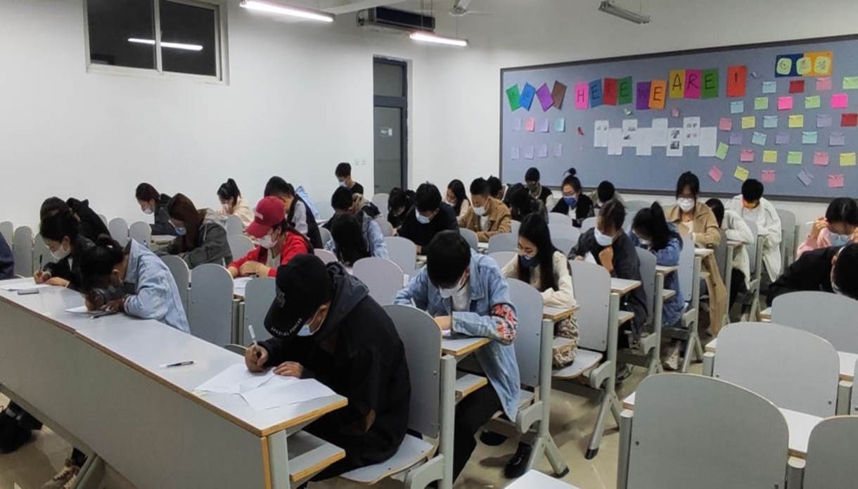 考试期间,考场肃静,每位入党积极分子全神贯注的写着试卷,教室里只有沙沙的写字声,线上考试学生人人都“埋头苦干”思考问题,专心致志把想好的答案写试卷上。