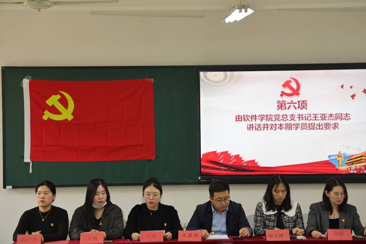 为认真做好新形势下发展党员工作,保证发展党员质量,落实《中国共产党发展党员工作细则》要求,根据校党委组织部下发的《关于开展 2023 年上半年人党积极分子、预备党员培训的通知》,切实加强入党积极分子的培养、教育和考察,提高入党积极分子的思想政治素养。软件学院于2023年3月15日晚5点20分在次教312教室,开展2023年上半年入党积极分子培训班开班仪式。参加本次开班仪式的领导老师有软件学院党总支书记王亚杰、学生党支部书记于录、学生党支部组织委员周玉妹、学生党支部宣传委员张静、辅导员王峥、辅导员白广平。本次开班仪式由张静同志主持。