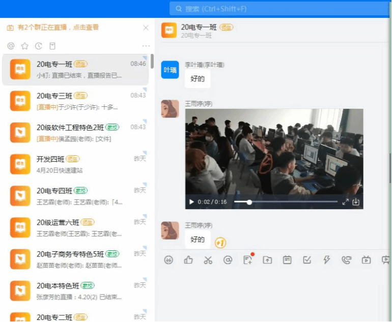 职业引导师每日都会在课前10分钟组织有课的班级进行线上视频签到,线下由班委组织学生准时进入教室听课,目的是确保每位学生都能在课前10分钟进入教室以及学习状态。此外在线上课堂中职业引导师会随时加入课堂查看上课情况,课程结束会随机展开课后签到督促每位学生都做到不迟到、不早退养成良好的学习习惯,端正学习态度。