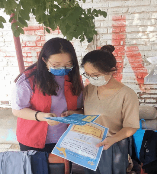 助力疫情防控,贡献青春力量。为进一步做好疫情常态化防控工作,精准落实管控措施,倡导健康文明生活方式,提高社区居民的疫情防范意识。河北工程技术学院软件学院王晓慧同学,作为一名大三的学生,利用假期时间在沧州市劳动花园社区牛进庄乡进行志愿服务活动。无惧高温、步履不停,全力以赴,积极向居民普及科学防疫知识。