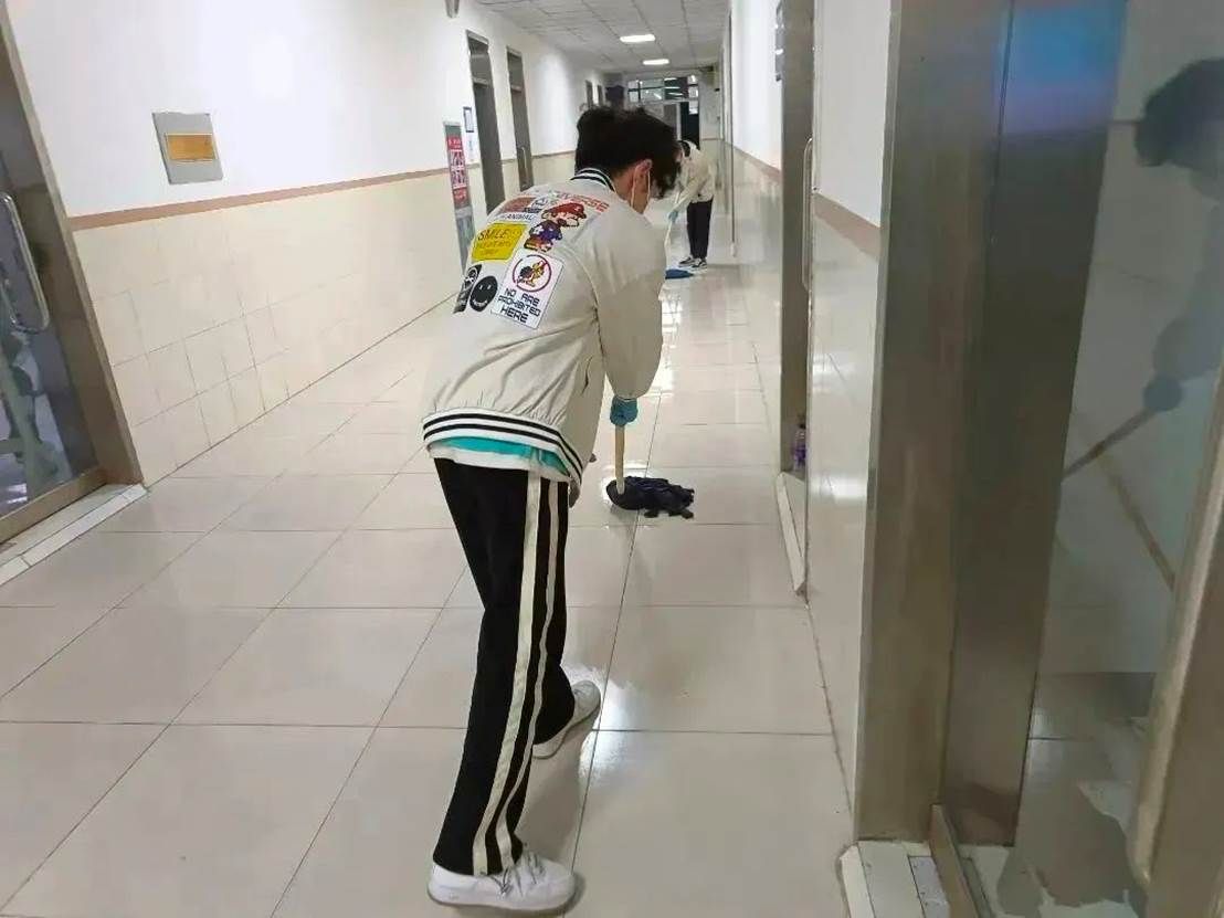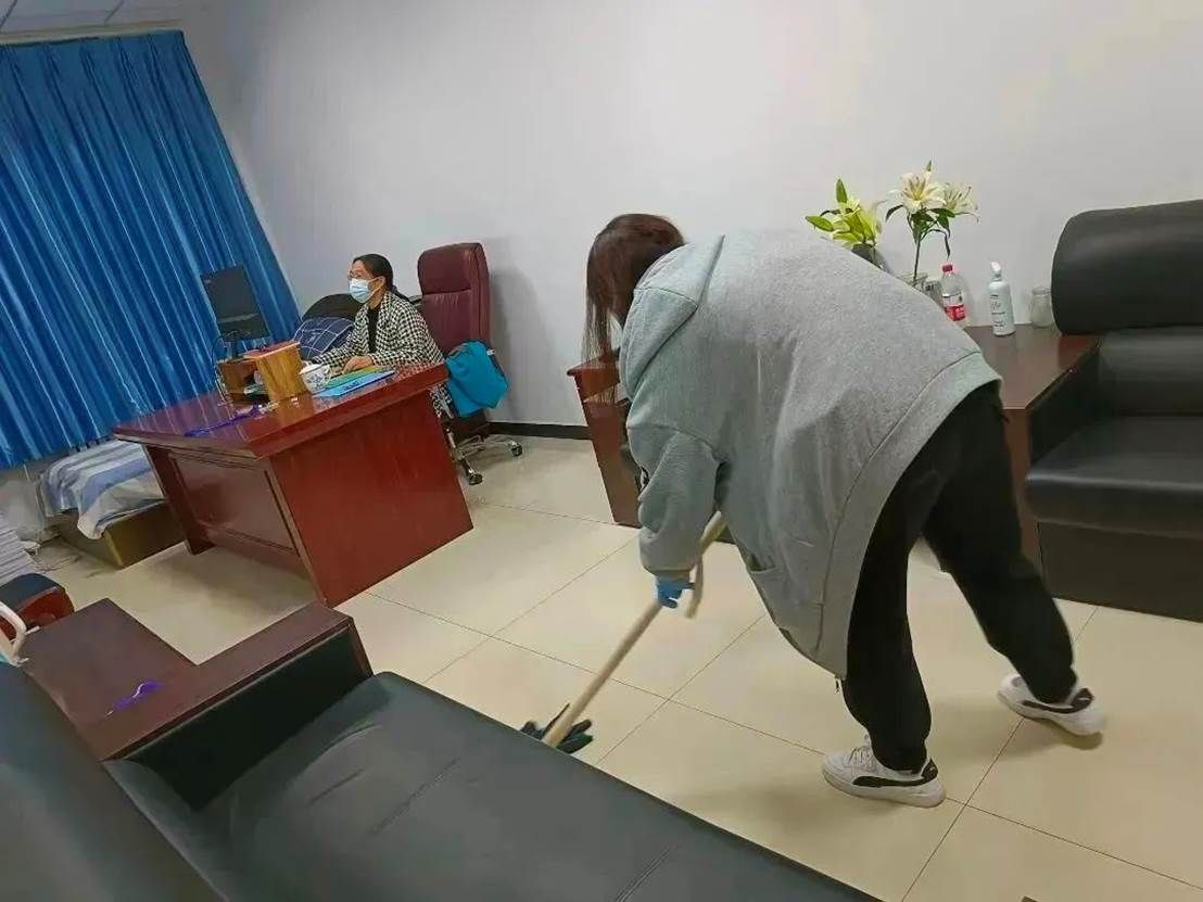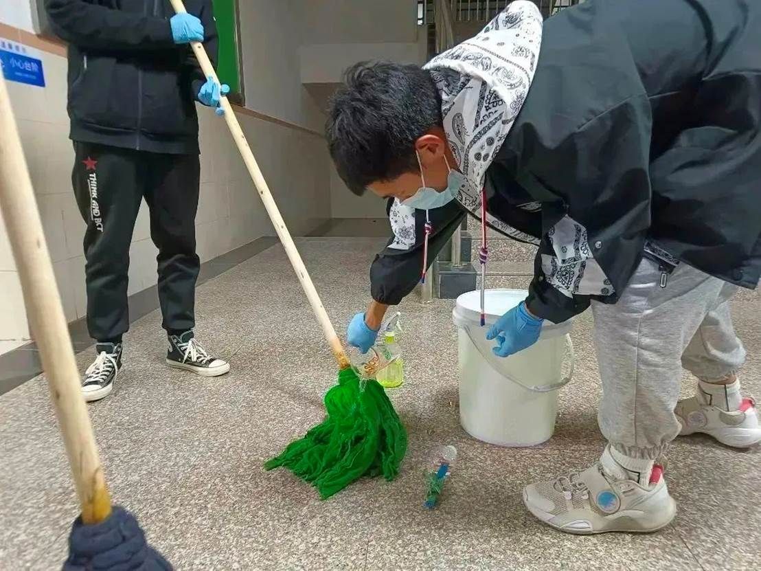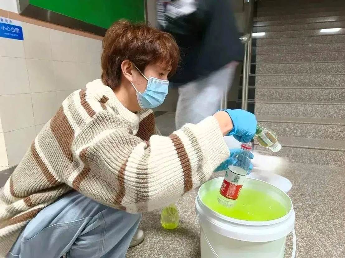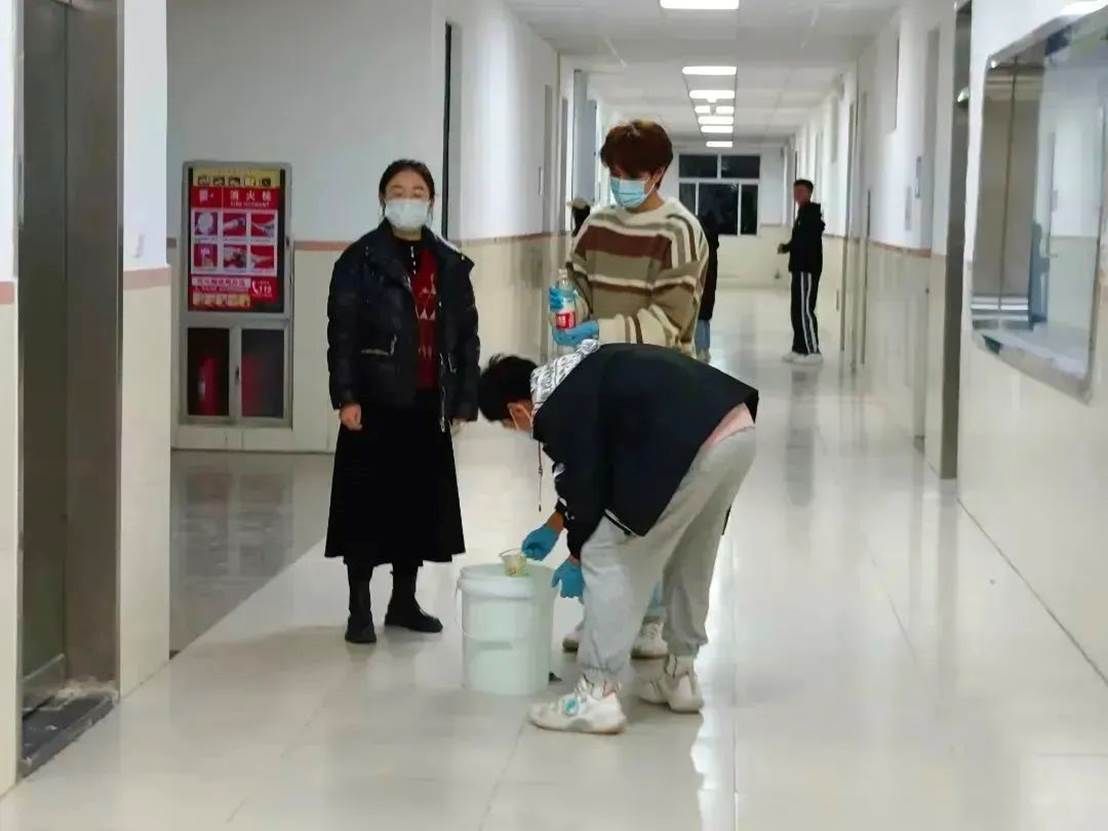 消杀进行中,老师和志愿者们严格按照卫生消毒管理标准规范操作,科学配比消毒液,戴口罩,手拿喷雾器穿梭在学院的各个角落。对教室、楼梯走廊、卫生间等区域进行了全方面细致的消杀,不遗漏每一个角落,确保万无一失,他们用实际行动坚决筑牢疫情防控的第一道防线。