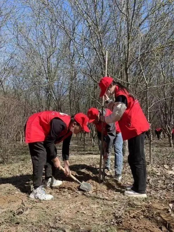 上午10时许,志愿者们来到植树点分散种植树苗。大家三五人一组,挥锹铲土、扶树培土、取水浇灌,配合默契、干劲十足,一片热火朝天的景象。同学们对此次志愿服务活动都充满了热情,希望能在春天留下自己的足迹。