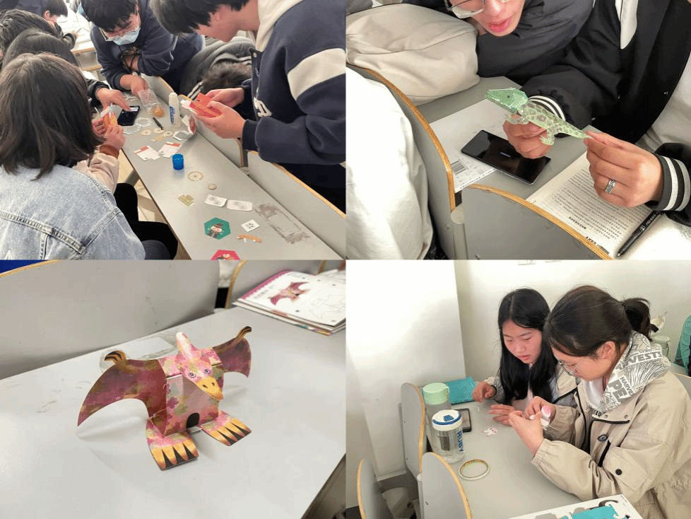 本次活动分为创意生活与手工体验两个部分,由学生组建小组共同构思、制作完成生活劳动创意作品,以及体验T恤改造、纽扣画制作、创意折纸等劳动。活动中,学生积极参与、热情体验,在劳动与创作过程中通力协助,共同完成小组作品。在劳动中,学生逐渐体会到劳动的不易,发觉个人基本劳动技能不娴熟、动手能力欠缺等问题。