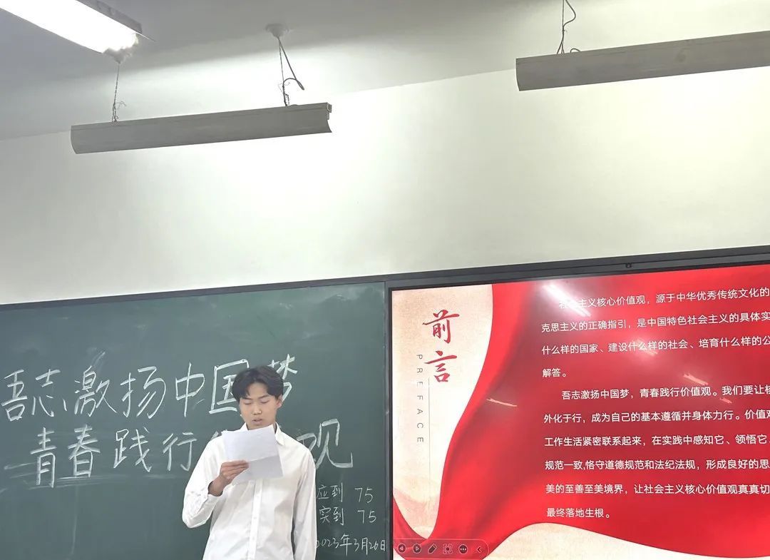 在比赛中,选手们慷慨激昂、饱含深情和情感的演讲,感动着在场的每一位评委和学生。选手们围绕“吾志激扬中国梦,青春践行价值观”主题,分别从个人的梦想,成长与使命,对价值观中友善的理解等方面,发表了演讲。
