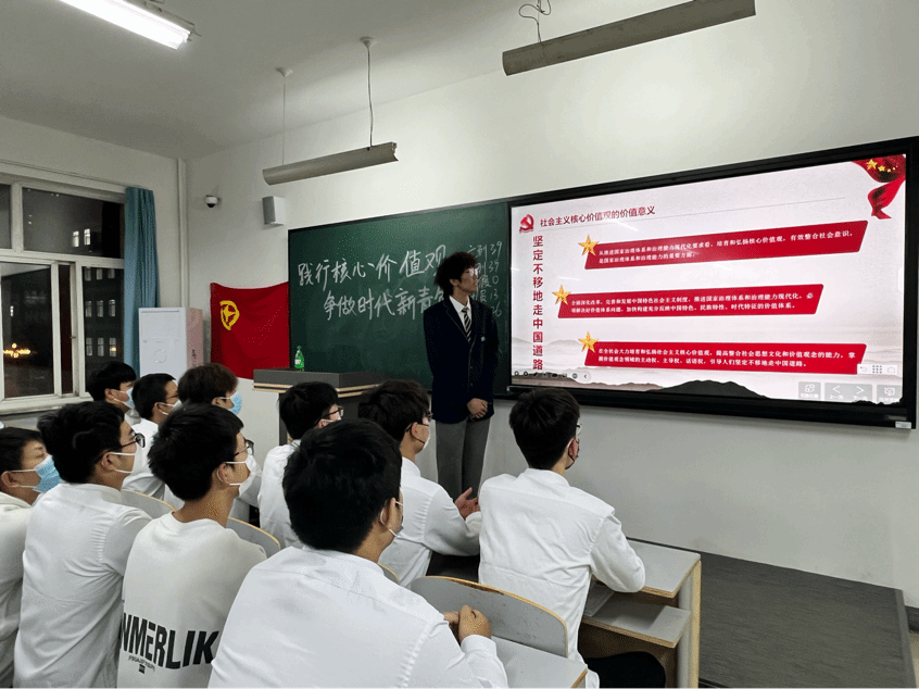 在本次团课中,各班主讲人以视频和PPT的形式详细的为同学们介绍了社会主义核心价值观的详细内容。从时代背景、概念内涵、发展历程、价值意义和践行路径五个方面进行阐述与讲解。使同学们能够深刻的了解社会主义核心价值观的内涵与意义,强调了社会主义核心价值观对于当代青年大学生的重要性质。