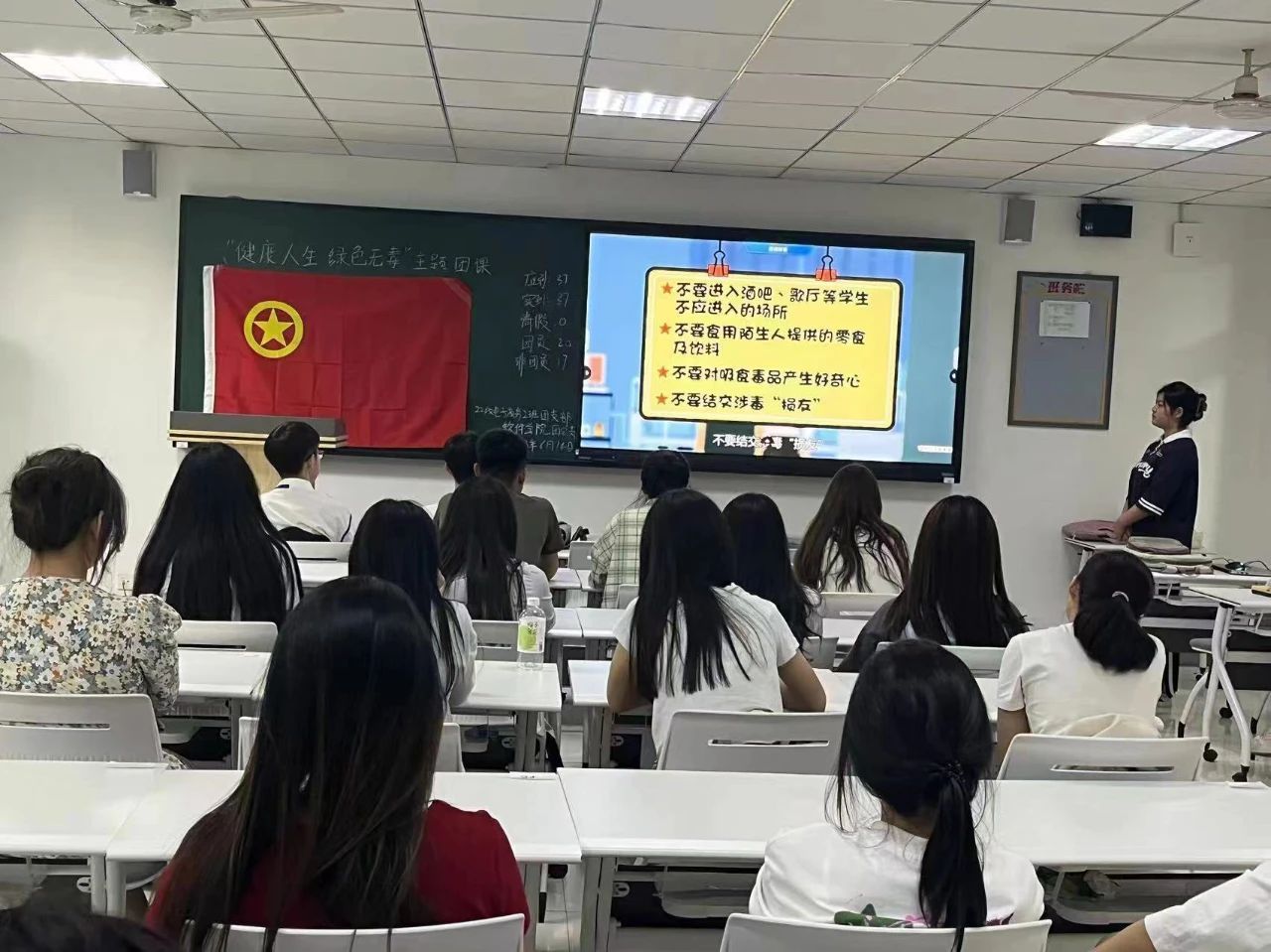 为提醒学生吸毒严重损害身心健康,提高大家防毒,识毒,拒毒的意识;增强健康意识,引起学生对吸毒有害健康的重视;号召学生们一起行动,全力参与到禁毒活动中去,营造一个健康绿色的校园环境。特此软件学院团务部于2023年6月14日组织2022级学生开展了“健康人生,绿色无毒”的主题团课。