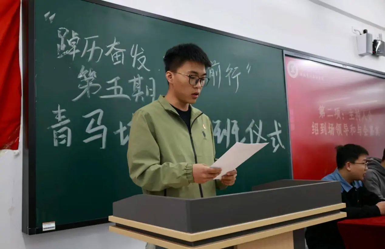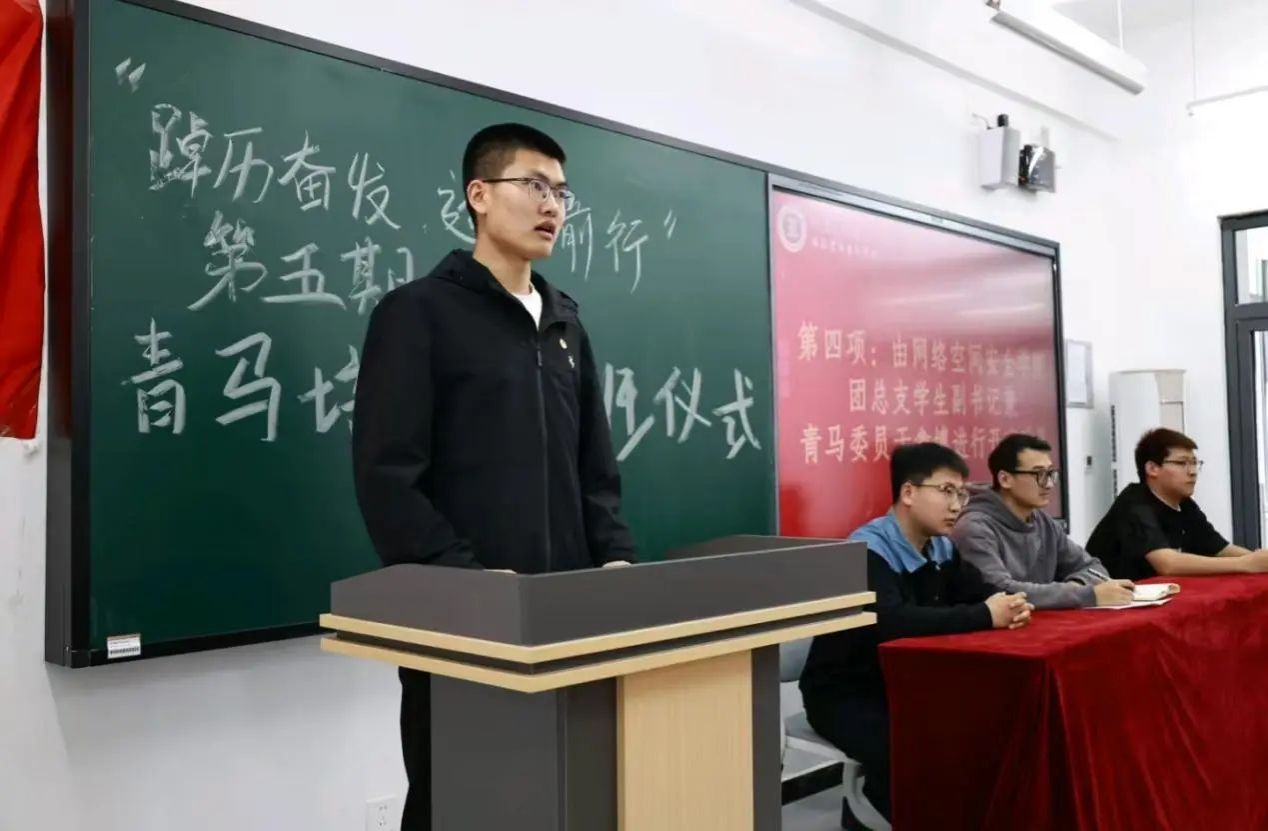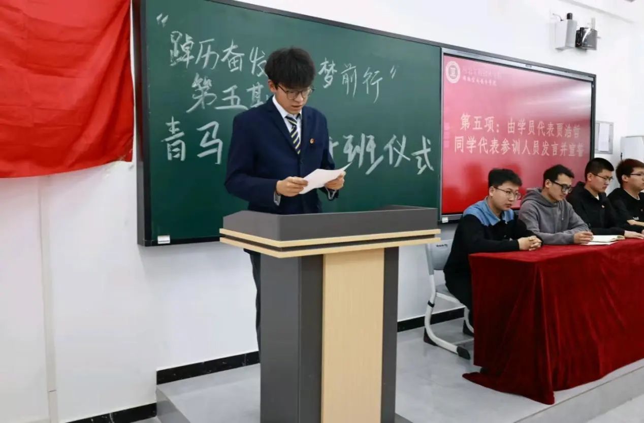 随后由学生代表贾浩哲上台发言。使得学员对于未来的青马学习过程充满了希望,同时也知道了此次机会来之不易,在今后的学习和生活中,把所学知识运用到实际行动中,以饱满的热情和严谨的态度投入到培训中,努力提升自身政治素养和综合能力,不负学校和老师的期望 ,为学校和社会发展贡献力量 。