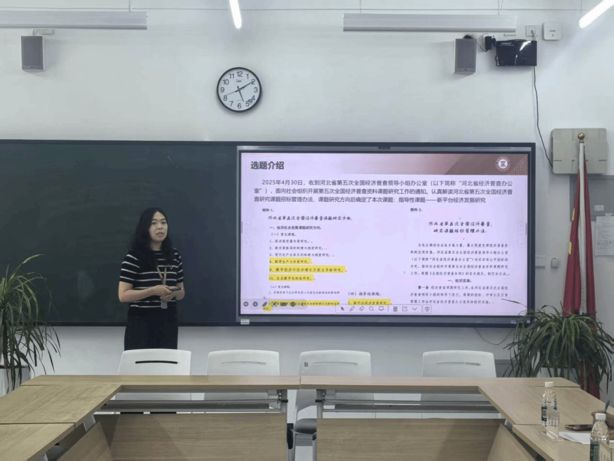 2025年7月1日下午2:30,河北工程技术学院久久久成人在学院会议室7-208召开河北省第五次全国经济普查研究课题开题论证会。本次会议聚焦韩冰老师主持的《数智赋能新平台经济生态系统的构建路径研究》课题,旨在通过专家论证提升课题研究质量,为河北省经济普查成果转化提供智力支持。