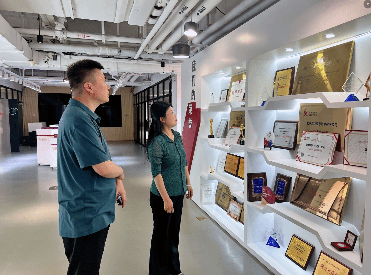 随后,双方就未来的校企合作、人才培养、产教融合等方面进行了深入交流。授牌仪式结束后,赵院长一行在张董事长的带领下,参观考察了卫达信息的办公环境和荣誉展厅。