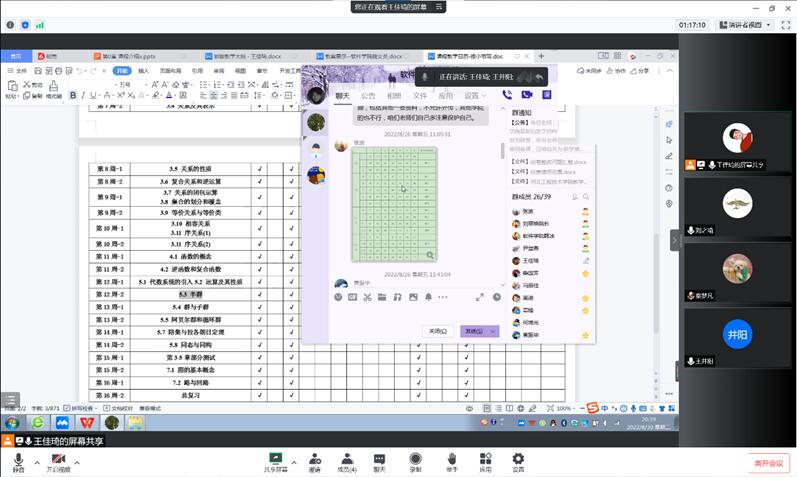 为了确保新学期教学工作的顺利开展,加强对新教师的培养,软件学院以系、教研室为单位开展同头课备课活动,这次活动涵盖了本学期所有任课教师,同头课教师队伍中,老教师牵头带领新教师完成备课工作,专任教师主动联系外聘教师共同完成备课工作,由经验丰富的教师主持备课工作,不管是专业必修课、还是专业选修课等,都保质保量的完成了备课工作,做到不落下任何一名教师。主要包含以下内容:研讨教学大纲(课时分配、教学内容、教学重难点、实验内容、考核形式以及考核比例等);确定教学资料编写要求(保持一致,以及日历、首页、续页具体书写、PPT自行编写); 教学平台的利用(超星平台中教学资源的建设)。