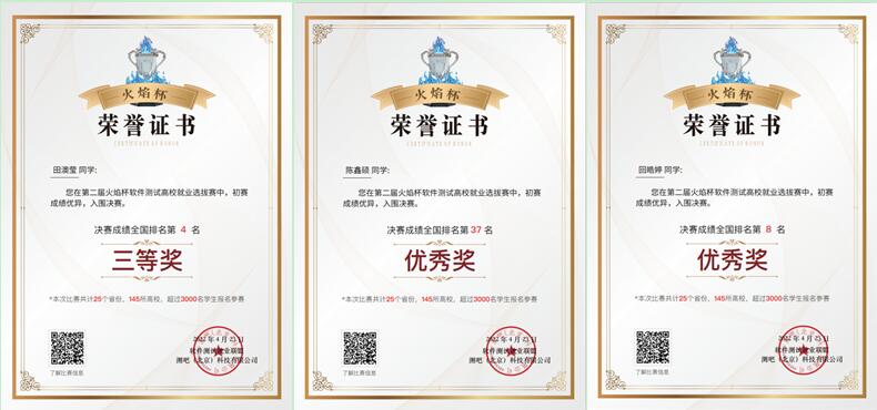 2021年12月,软件工程系软件测试课程组开始筹备软件测试方向开放实验室事宜,在软件学院各任课班级进行宣传,组织学生进行培训。在第二届“火焰杯”测试开发高校选拔赛开始之际,积极组织实验室学生报名参与,以此来检查学习情况。课程组老师也根据比赛内容有针对性的提前准备相关资料,包括Web自动化、App测试、接口测试等。老师们牺牲个人休息时间,采用线上、线下等多种方式进行答疑,帮助学生排忧解难。为了达到良好的比赛效果,专门申请了实践教学中心的机房为学生提供稳定、良好的比赛环境。最终在初赛、复赛落下帷幕后,学生们各自取得了优异的成绩。