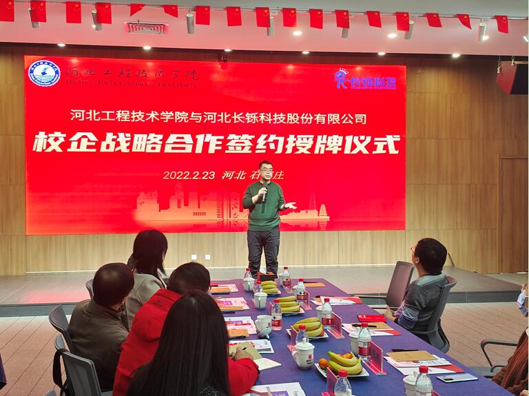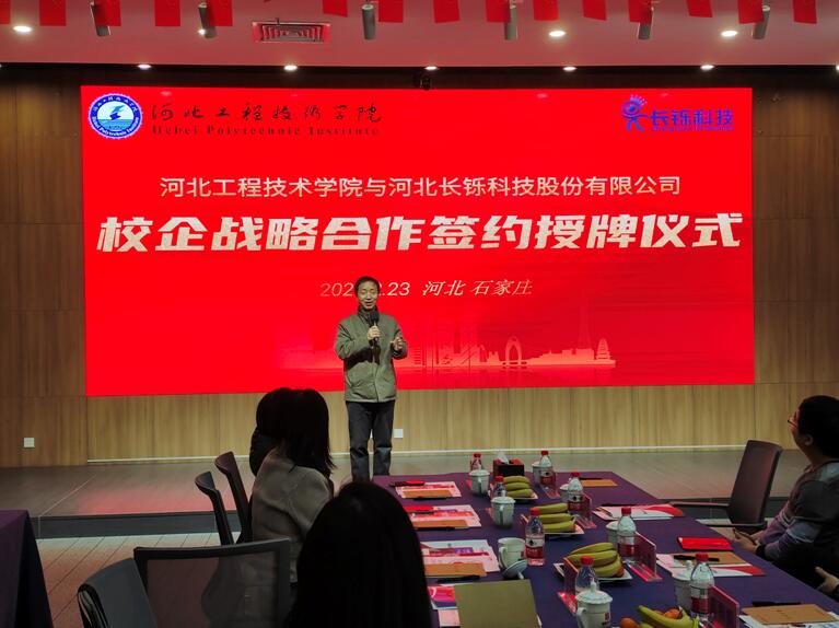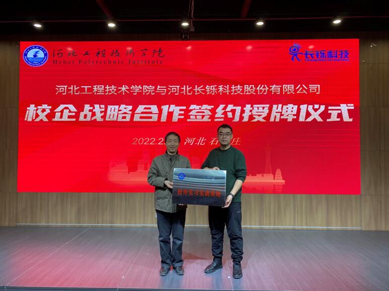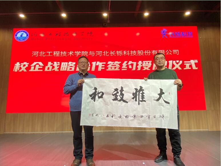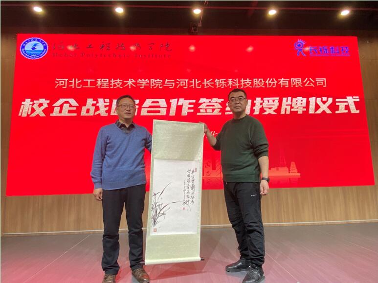 副校长辛彦怀为河北长铄科技股份有限公司颁发了“河北工程技术学院校外实习实训基地”牌匾,双方互赠文化礼物;签约授牌仪式结束后,双方还举行了产教融合协同育人座谈会,对合作内容和形式、深度和广度深入交换了意见。