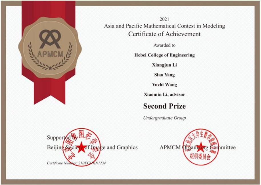 近日,2021年第十一届APMCM亚太地区大学生数学建模竞赛成绩揭晓,我院学生杨思澳、李相骏首次组队参赛,喜获国际二等奖的好成绩。