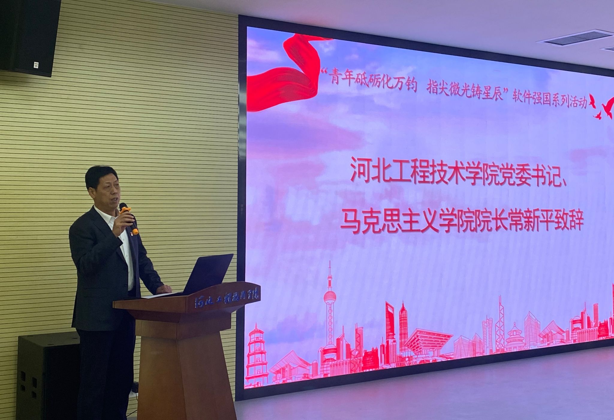 党委书记、马克思主义学院院长常新平首先为活动致辞,他为师生介绍了当前党和国家科技创新事业发展的战略导向及软件对国民经济、数字经济高质量发展的重要支撑作用。强调师生在工作与学习过程中,识变应变,主动求变,学以致用,报效祖国,脚踏实地,知行合一,以只争朝夕的责任感、使命感、紧迫感,努力推动软件技术加快突破,以大胆创新创造的奋进之姿,肩负起国家发展进步的使命。