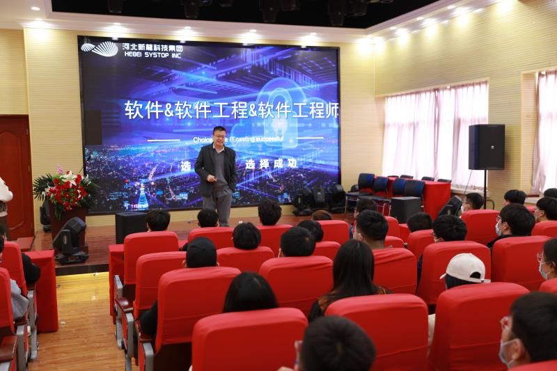 学生们先由公司技术人员带着参观了新龙科技集团的大数据智慧展厅和电商直播展厅,公司技术人员为学生展示了该公司的规模,负责的项目和开发系统等方面,了解了软件行业市场应用场景。然后大家一起到报告厅听专家讲座,由王瑞江老师给学生们做软件&软件工程&软件工程师的讲座,了解软件及软件技术行业对人才的需求点。