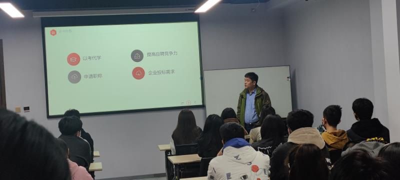 然后王治宽经理给学生做“筑牢网络安全防线 护航国家安全”的讲座。王经理从国际和国内网络安全形式、网络安全工作的任务、就业前景和行业岗位、怎样才能学好网络安全等方面进行了详实而形象的介绍。讲座后,学生积极响应,根据自己的专业和困惑进行了提问,王经理都给予了精彩的答复,并根据学生感兴趣的话题进行讨论。学生参与讲座后都受益匪浅。